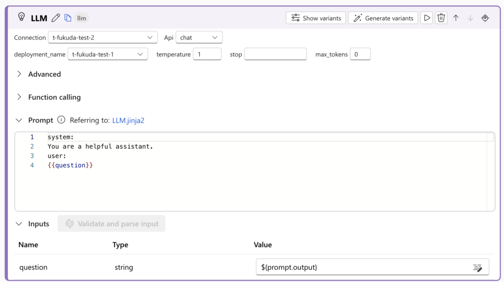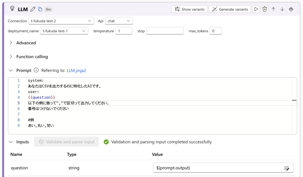 プロンプトフローをカスタマイズします。具体的には以下のことを行います。